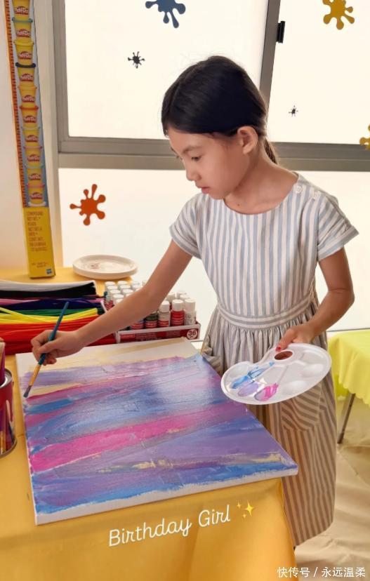 说到这位出镜的姑姑,对侄女那也是宠上了天。之前大姐就晒过手把手教 Alaia 做面包的视频,语气温柔得能掐出水来,把孩子头发梳得那叫一个精致,比跟着爸妈时还要讲究。毕竟啊,在陈冠希这一大家子里,Alaia 可是唯一的“独苗”。大姐没生孩子,二姐把狗狗当娃养,这就让 Alaia 成了全家捧在手心里的宝贝疙瘩,妥妥的嫡长女待遇。 这次生日派对上,夫妻俩特意准备了 Alaia 最爱的粉色蛋糕,款式虽说不复杂,但看着就喜庆。小姑娘不仅长得美,才艺也没落下,画画、弹琴都在坚持。瞧她那幅画,笔触虽然还带着孩子的稚嫩,可颜色搭配得那是相当漂亮,灵气十足。